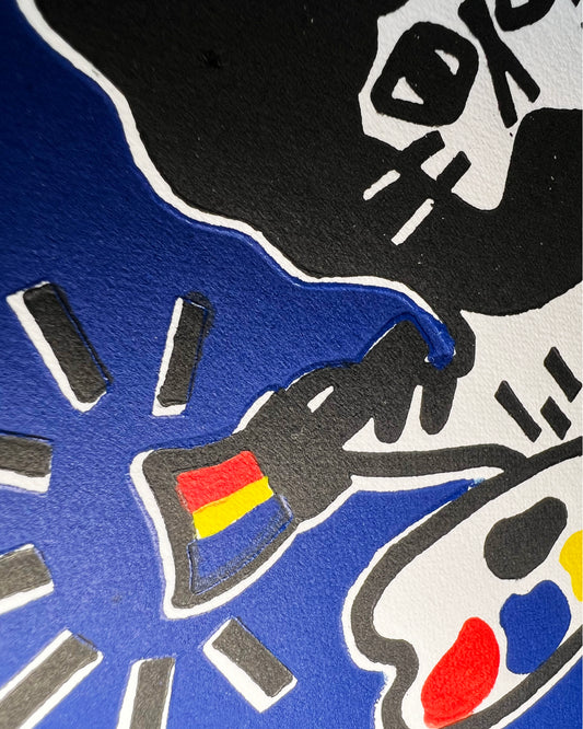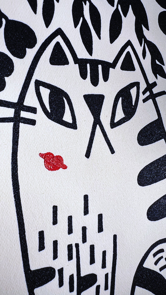 Cat Handmade Linocut Cat Art Print - Bob Ross Cat/ Bobcat