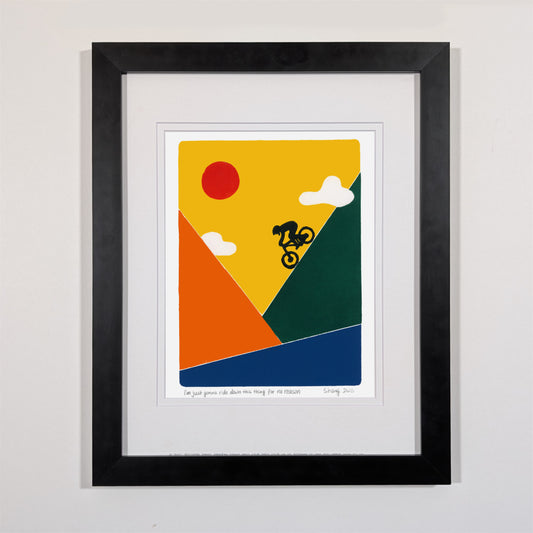 Cycling Handmade Linocut Art Print - I am just gonna ride down this thing for no reason