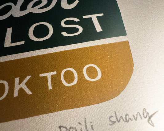 Handmade National Park Sign Linocut Art Print - Some Who Wander are Lost ™