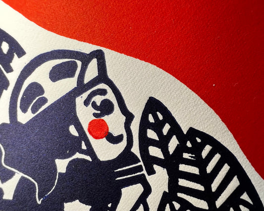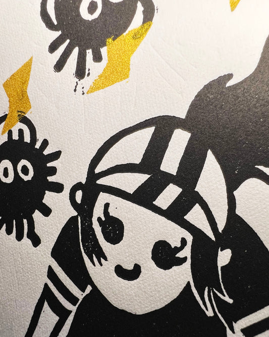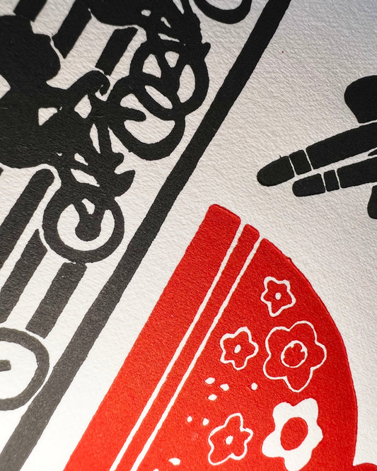 Cycling Handmade Linocut Art Print - Ride to Ramen