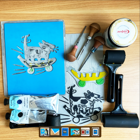 Cycling Handmade Linocut Art Print - Sprinted Away