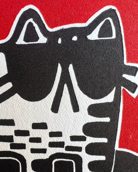 Cat Handmade Linocut Art Print - Rest is Not a Crime